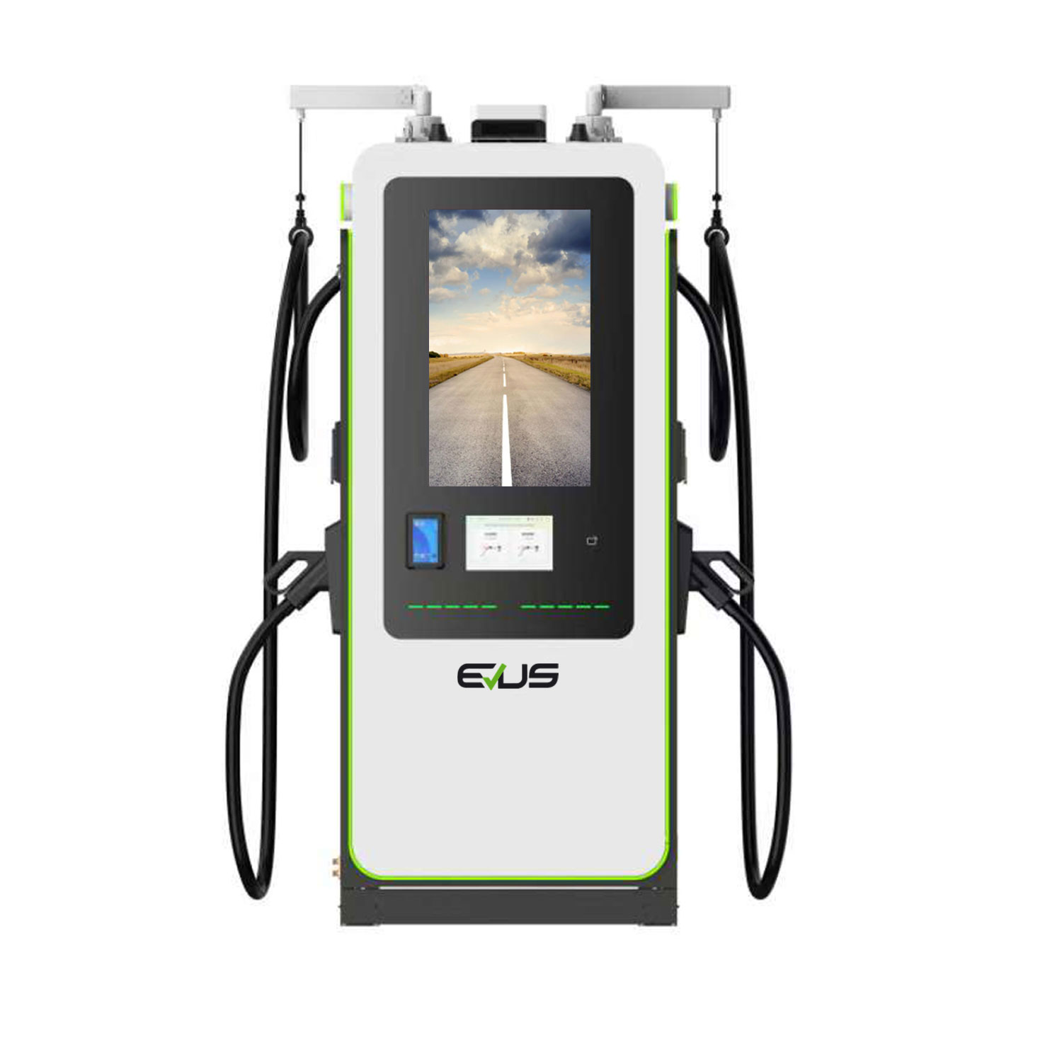 Cargador ultrarrápido de 160kW en CC. Doble conector CCS2 con manguera de 5 m con sistema articulado y retráctil.