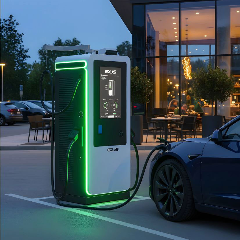 Estación de carga rápida en CC para vehículos eléctricos de alta eficiencia, reduciendo el tiempo de carga de la batería del vehículo.