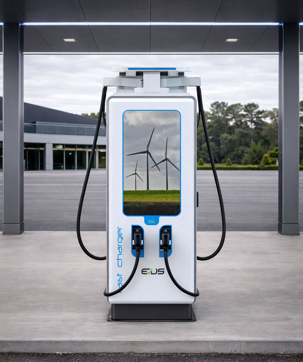 Estación de carga rápida en CC para vehículos eléctricos de alta eficiencia, reduciendo el tiempo de carga de la batería del vehículo.